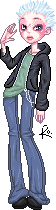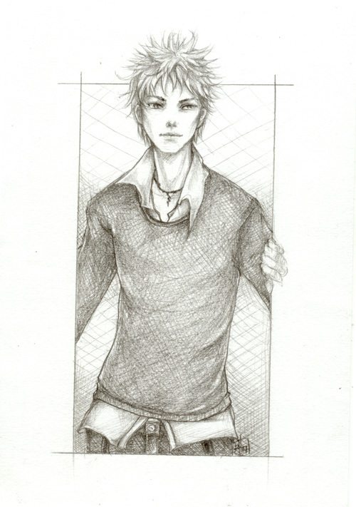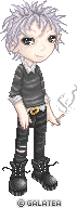 He'd likely wear all shades of black and white, his clothing worn soft with holes in the most commonly used areas - knees, the hem/elbows of his shirt, around the bottom of his pants, black jeans or sweat pants and layered shirts/hoodies. It'd all likely be big and comfortable. His boots would be sturdy and ancient. He might or might not carry an old black messenger bag over one shoulder, with emergency supplies [like a change of boxers] in it.