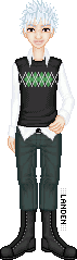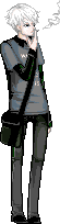 Alternately, he might wear something crazier, still in black and white and green and gold [his favorite color is green]..an example outfit, something he ACTUALLY wore in RP at one point:
