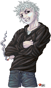 Personality wise, he's something of a dick. Snarky and somewhat fatalistic, he likes to push peoples' buttons and is willing to accept the consequences of doing so. He's extremely social, partly because he goes hunting in social places - like bars, clubs, restaurants - but he also isn't completely connected to reality. He manipulates people, but it's still surprisingly easy to manipulate him. When he smiles, it's more of a crooked wry expression, as opposed to a joyful smile. He's also...pretty...crazy. In a dissociative disorder kind of way. And he's queer as a three dollar bill, with a preference toward older men. ^.^