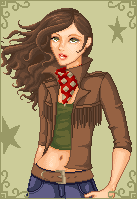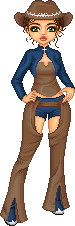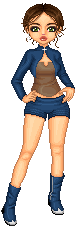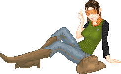 Clothing is generally in shades of green and blue and black and brown and cream - earthy and natural sorts of colors. Some maroons and deep reds too. Not bright cheery colors, but down to earth colors. She likes to be revealing but practical; she wants to wear heels but knows she shouldn't, so she compromises by wearing heeled bootss - this is an example of what she'll do. She almost always wears pants, because skirts are too dangerous, but she'll wear tight pants to make up for it. She likes low cut blouses.