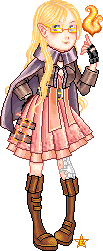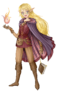 She's an elf with pale skin, pale gold hair that is extremely long down her back and generally messy, and violet eyes, who wears small, gold, wire-frame glasses. She's cute, smallish, and generally she's seen in a classically D&D style outfit [think high fantasy, with knights and kings and queens and elves and whatnot -- like Ragnorak Online, or WoW or other settings like that] or in something more modern, like our world with fantasy elements mixed in. She travels [adventurer!] and likes alchemy and fire magic. She's a bookish girl who looks young despite her 100+ years of age, and who really likes to blow things up. Or set them on fire. Or disintegrate them. Really, working with dangerous magic and dangerous chemicals.