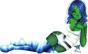 she has water-sculpting powers...and green skin. But she has a special watch that makes her skin color look natural when she's not using her powers...so no one can instantaneously tell who she is. heh.